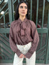 Camicia manica sbuffo a pois con bottoni e fiocco